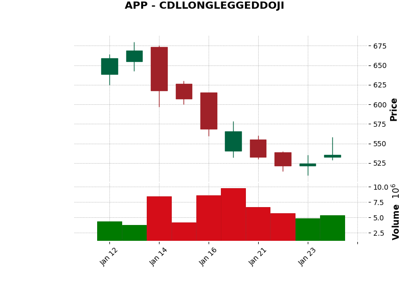| APP | CDLLONGLEGGEDDOJI | Bullish | Long Legged Doji: Indicates indecision. | Watch closely | View Chart |