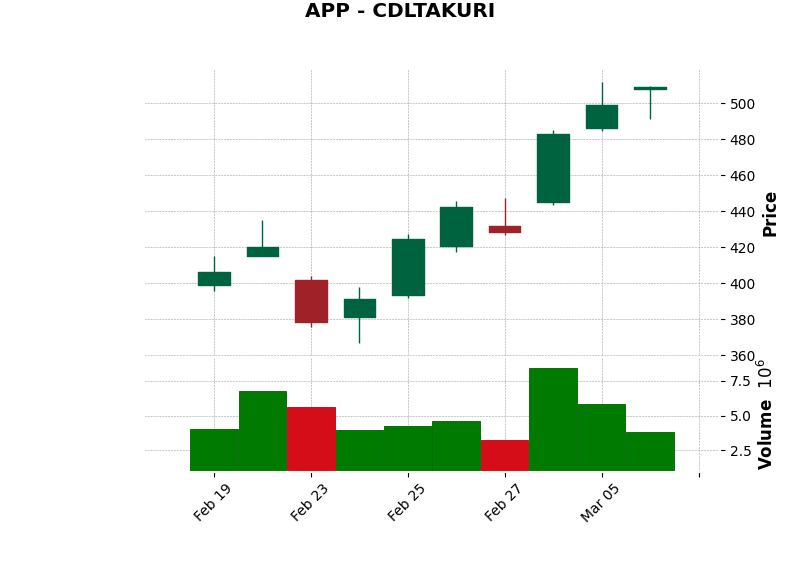 | APP | CDLTAKURI | Bullish | Takuri (Dragonfly Doji with very long lower shadow): Bullish reversal. | Buy stock | View Chart |