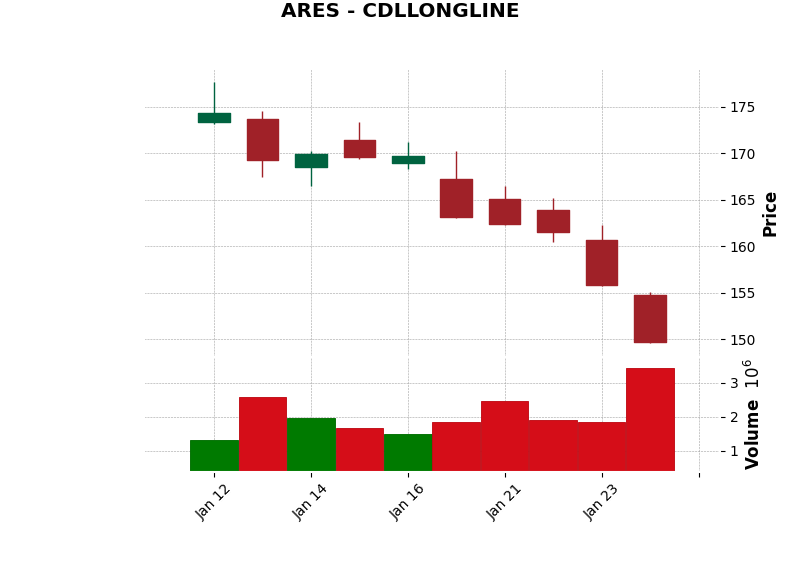| ARES | CDLLONGLINE | Bearish | Long Line Candle: Indicates strong sentiment. | Watch closely | View Chart |