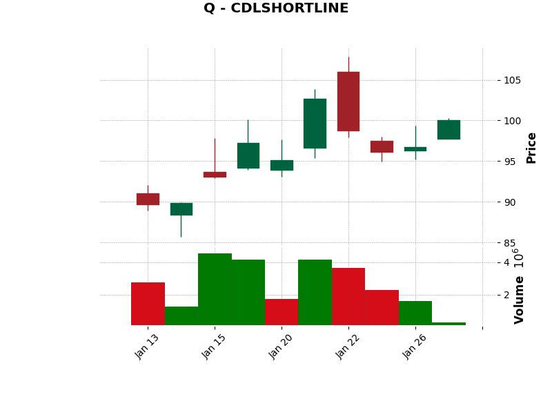 | Q | CDLSHORTLINE | Bullish | Short Line Candle: Indicates weak sentiment. | Watch closely | View Chart |