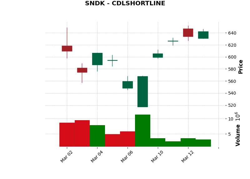 | SNDK | CDLSHORTLINE | Bullish | Short Line Candle: Indicates weak sentiment. | Watch closely | View Chart |