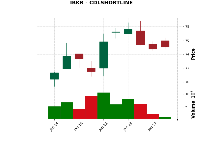| IBKR | CDLSHORTLINE | Bearish | Short Line Candle: Indicates weak sentiment. | Watch closely | View Chart |